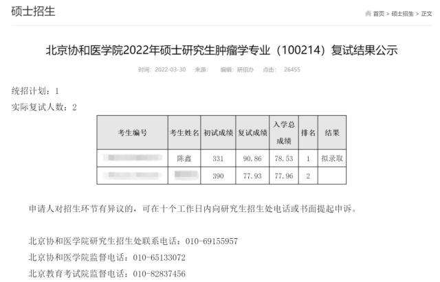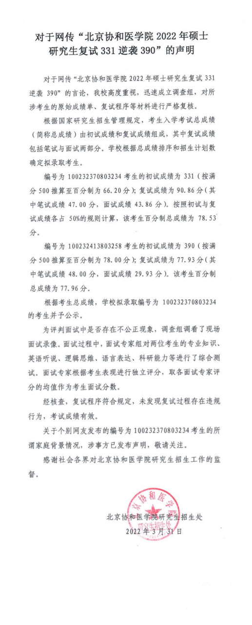 图片来源:北京协和医学院研究生招生网「331 分」击败了「390 分」,这个追平 60 分逆袭上岸的结果一经公布,便吸引来无数质疑目光聚焦于此。