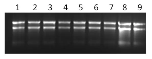 注意,凝胶一定要保证溶解完全,要不然会导致条带不均一。电压太高或者跑太长时间会产热,导致 RNA 降解,所以要合理控制电压和时间。此外,跑胶也可以进一步确定样品中是否有 DNA 的残留,观测点胶孔是否有大量滞留的条带。