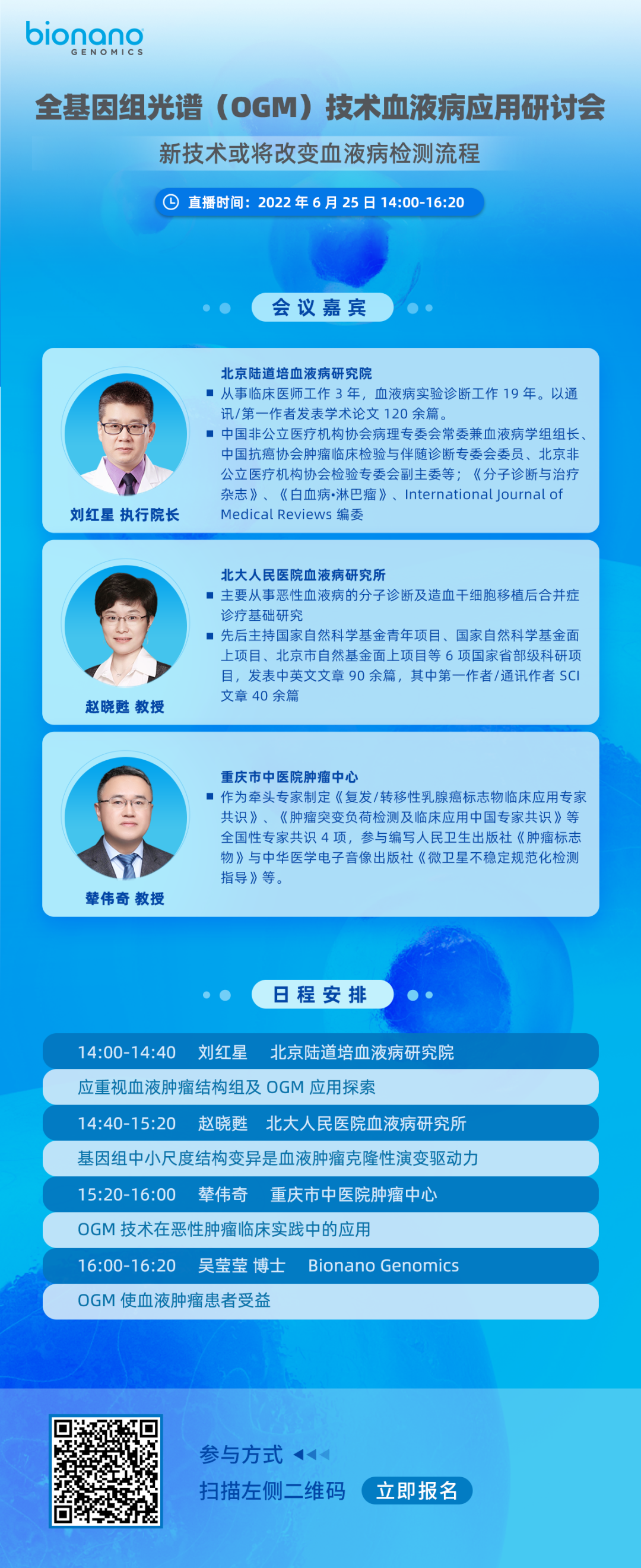为方便大家深入了解全基因组光学图谱(Optical genome mapping,OGM)技术在血液病中的实际应用,Bionano Genomics 公司特组织 OGM 技术血液病应用研讨会,期待各位届时参加关于血液病诊断新技术的讨论。