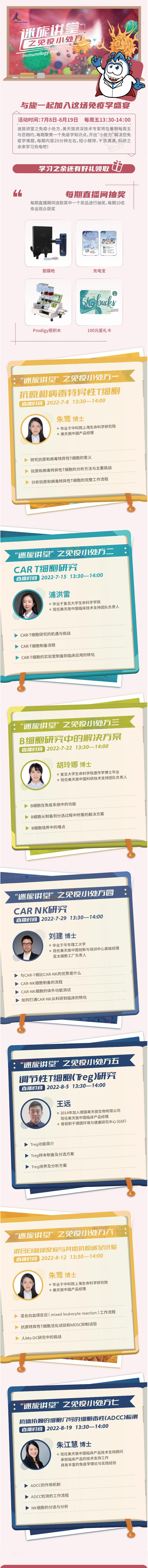 作为专业的细胞研究、细胞治疗和细胞生产解决方案的提供者。美天旎将在这个暑假陪伴您,仅需每周半小时,帮助大家超速补充免疫研究知识点。