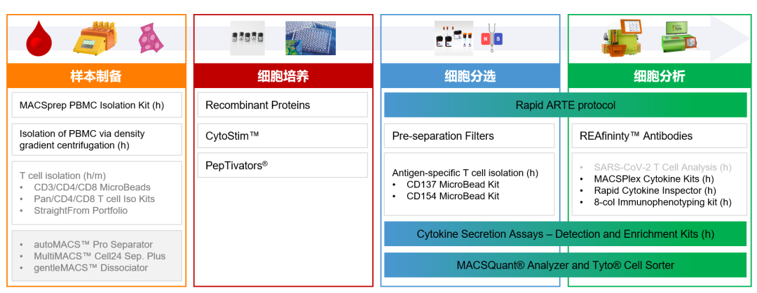 在完整 T 细胞研究工作流程中,包括 T 细胞刺激、富集和分析。对于研究稀有抗原和病毒特异性 T 细胞,如何克服研究中的关键挑战,低细胞频率、非特异性标记和高背景染色成为关键。