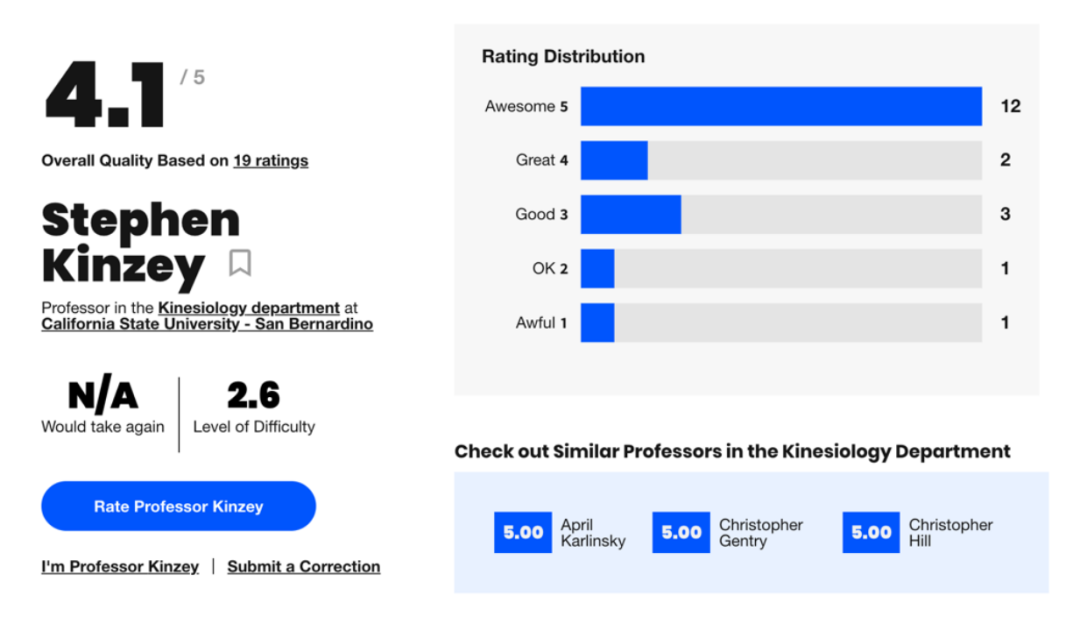 而在教师评价网站 RateMyProfessor 上,金赛直接拿到了 4.1 的高分,即便后来东窗事发,他学生依旧留言坚称:金赛是「很棒的老师、很棒的人、很棒的朋友」、「特别出色」、「很酷」、「他真的很关心学生」……