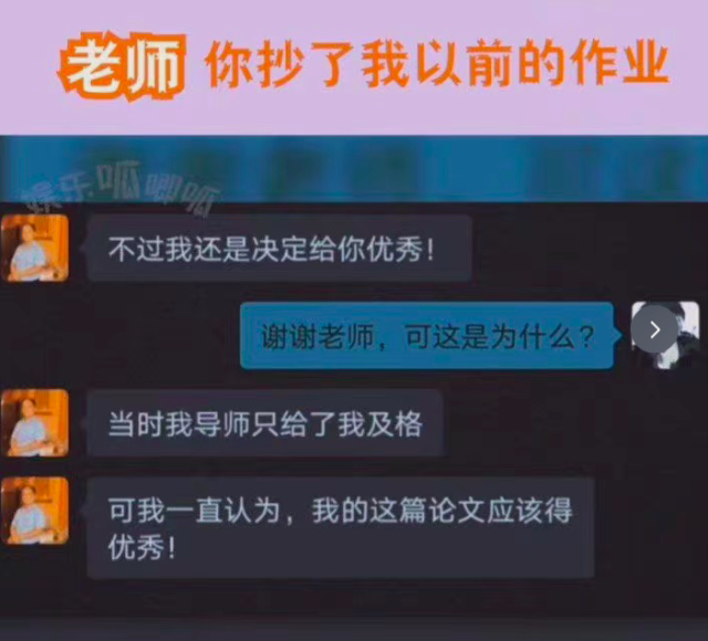 图片来源:微博几条微博看下来,给学霸君看得低血压都治好了。回想起当年写毕业论文的时候,办公室实验室两点一线贪黑起早,穷苦的研究生甚至还买不起咖啡,吃饭看缘分,掉的头发攒起来都够织件毛衣还剩半条围脖,可算是送审的时候拿了几个优;闹了半天敢情还不如直接找导师抄一篇呗,反正发几句哈哈哈哈哈哈这事就过去了,省时又省力。小丑竟是我自己!