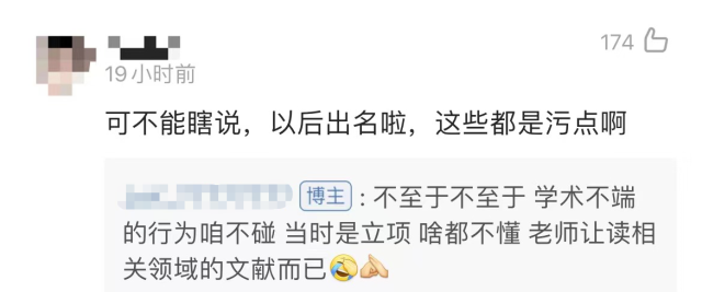 图片来源:微博但更让学霸君看不明白的对话出现了。有个网友说抄袭行为不能当笑话,结果被反怼回去「没上过大学吗」,顺便直接给「抄论文」安排成了学术规范中合理的「参考」行为,理直气壮得好像凡是大学期间没抄过论文的一律取消颁发毕业证一样。