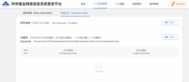 准备工作一是完善个人信息,包括基本信息和科研主页两部分。
