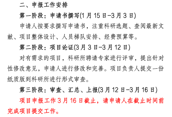 需要注意的是,有的高校科研组织比较充分,会对申报项目提前进行论证和汇总后再上报,这样一来,完成申报书的时间就又要提前了。