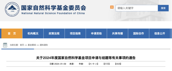 1 月 9 日,国家自然科学基金委员会(国自然)正式发布《关于 2024 年度国家自然科学基金项目申请与结题等有关事项的通告》。