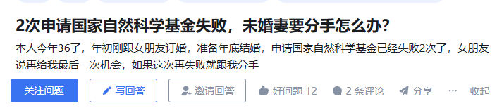 有的网友已经两次与国自然失之交臂,就连女朋友都快看不下去了想要提分手,能感受到网友深深的绝望以及对今年的国自然申请的强烈渴望。
