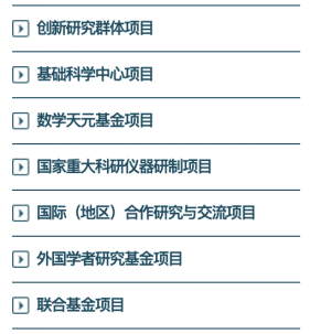 2024 年国自然能够申报项目的类型,除传统的青年科学基金项目(青基)、面上项目(面上)、重点项目(重点)、重大项目(重大)、重大研究计划项目、优秀青年科学基金项目(优青)、国家杰出青年科学家基金项目(杰青)之外,还有地区科学基金项目、创新研究群体项目、基础科学中心项目、国际(地区)合作研究与交流项目等多个类型。