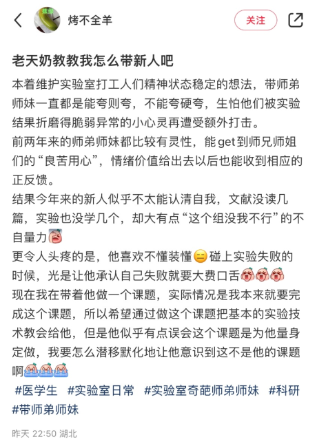 后面她都想转行了,她问我「师姐,我是不是不适合做实验啊」,我该说些什么才好呢?