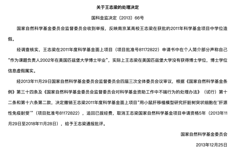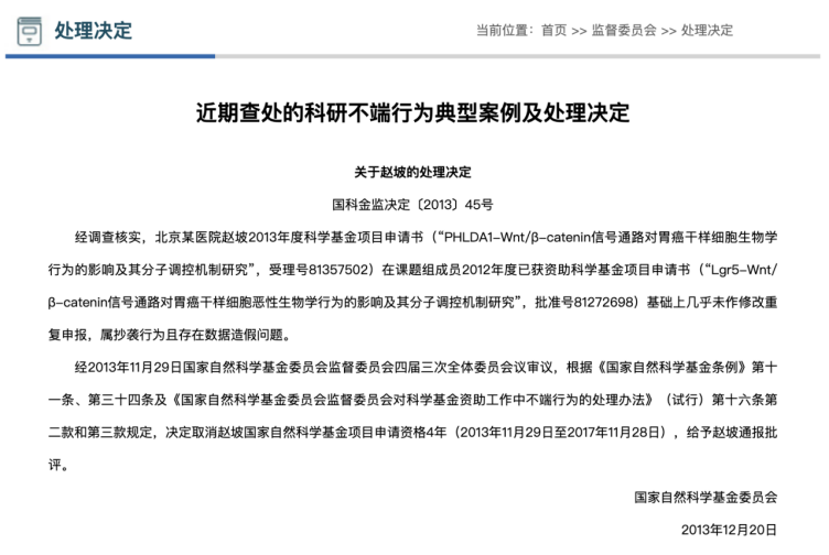 当然,他也是迄今为止国自然基金委所有通报批评中受处罚最重的一个,被永久取消项目申请和参与申请的资格,学术生涯基本断送。