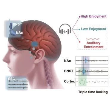 具体而言,BNST 与 NAc 之间的 gamma 振荡与音乐享受相关,且在享受音乐的患者中,三重时间锁定的振荡活动显著增加。此外,引入特定频率的调制声能提高对音乐反应不佳患者的神经同步性。这些发现为优化音乐治疗提供了潜在策略,未来有望进一步揭示音乐与大脑互动对抑郁症治疗的影响。