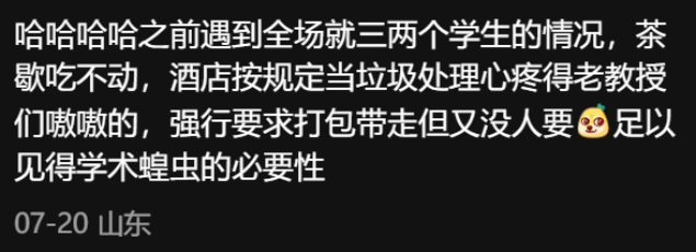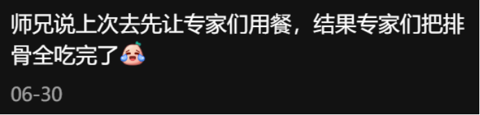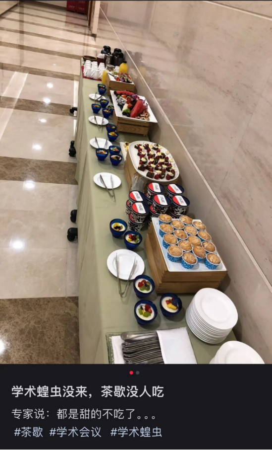 图片来源:小红书还有啊,勤俭节约一贯是我国传统美德,我们「学术蝗虫」最大的长处就是所经之处寸草不生,属于是积极响应我国「光盘行动」政策!不然你看个别「蝗虫」含量太低的会议,老专家们干不动那么多甜食,结果就是满桌佳肴无人问津,朕的心都碎了!