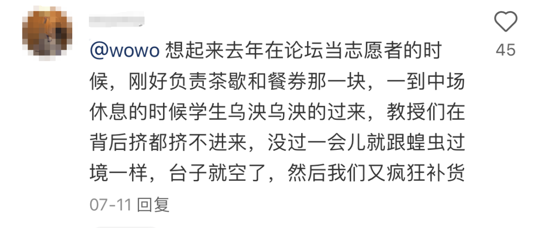 图片来源:微博多年以后,学术蝗虫们回想当年的战绩之时,或许会感到些许不好意思:毕竟,蝗虫过境之后,主办方就要疯狂补货,多少有点给人加工作量的意思了。