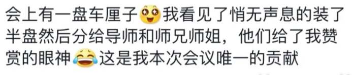 图片来源:小红书毕竟老话说得好,干饭不积极,思想有问题!你看这个学生这么能吃、会吃、狠狠吃,都不敢想他做起科研来有多猛!(确信)这样等到会议结束,导师让你在组会上向同学们分享本次参会的所学所感,咱起码也不露怯:「虽然这位专家的观点我理解得不是非常透彻,那位老师的发言我记录得不算特别全面,但是,诶!有一款甜而不腻入口即化的蛋糕可以分享给大家 ……」