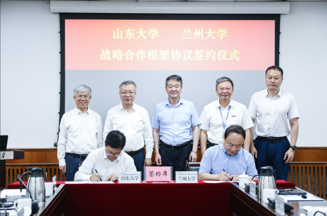 8 月 15 日上午,山东大学、兰州大学战略合作框架协议签约仪式在城关校区举行。山东大学党委书记任友群、校长李术才院士、党委副书记陈宏伟,兰州大学党委书记马小洁、校长严纯华院士、副校长沙勇忠,甘肃省委教育工委委员、省教育厅副厅长白江平等出席会议。