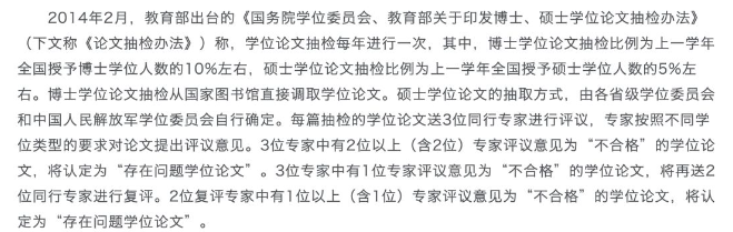 尽管早在 2014 年,研究生毕业生的论文抽检工作就趋于严格。